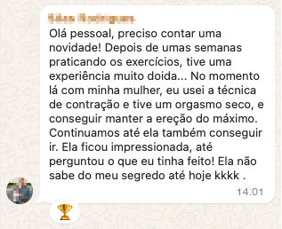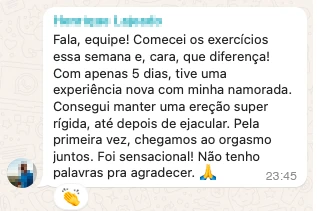 “Cara é simples demais, já tinha comprado outros materiais, mas nada iguala a esse protocolo personalizado, eu não esperava que seria tão rápido minha transformação, mudou minha vida, eu consigo transar por horas, inclusive consigo em posições que antes era impossível.”